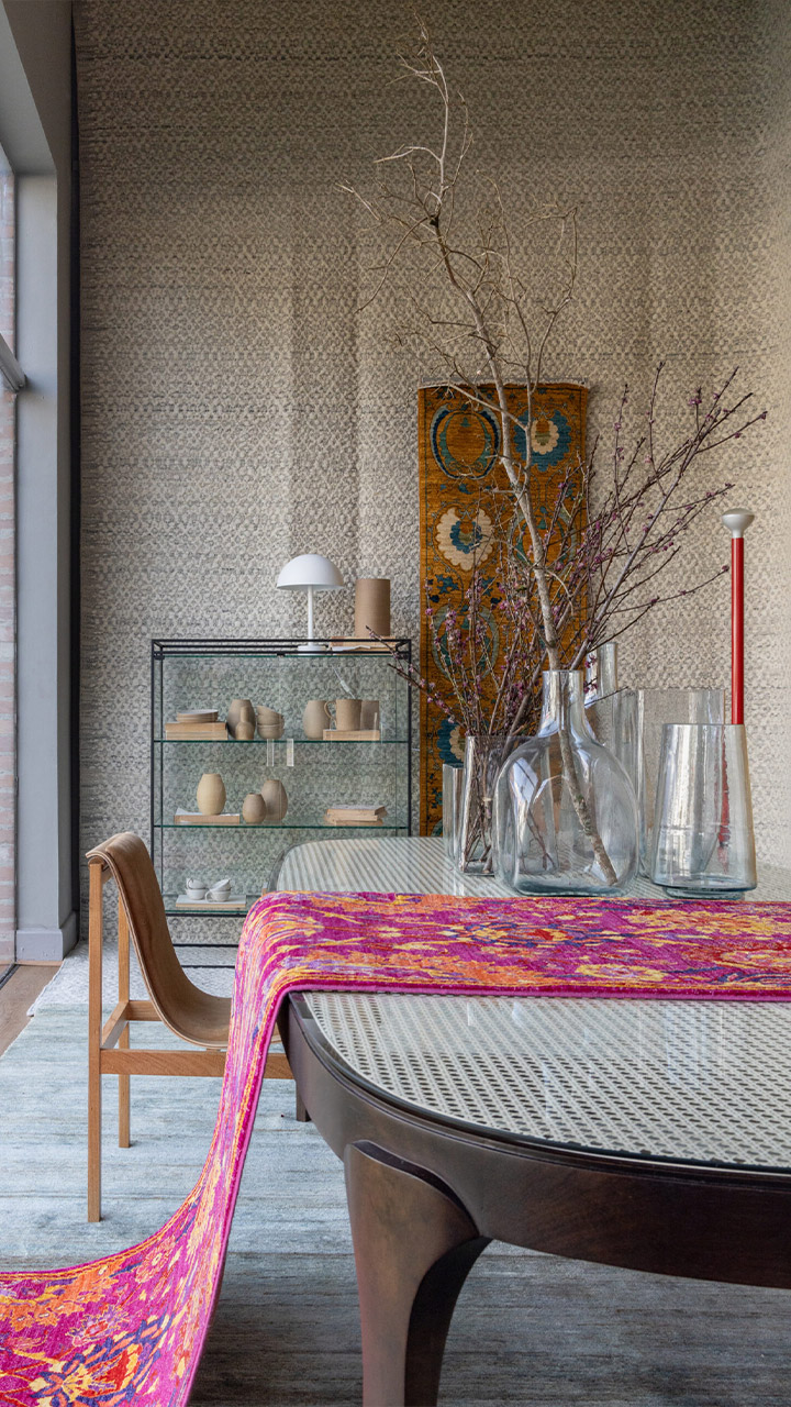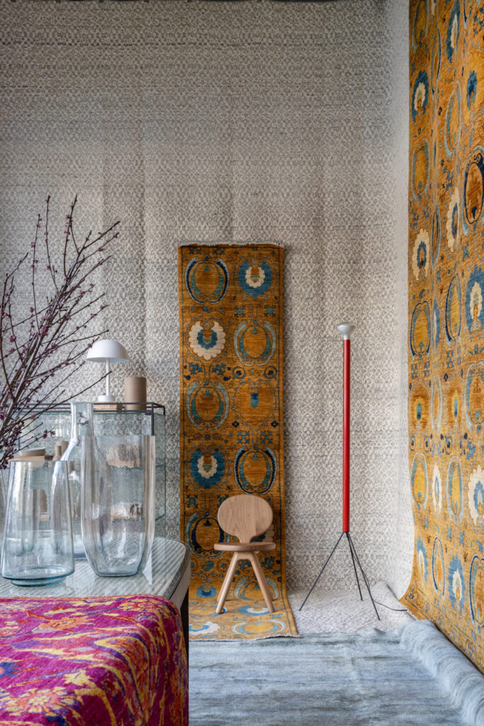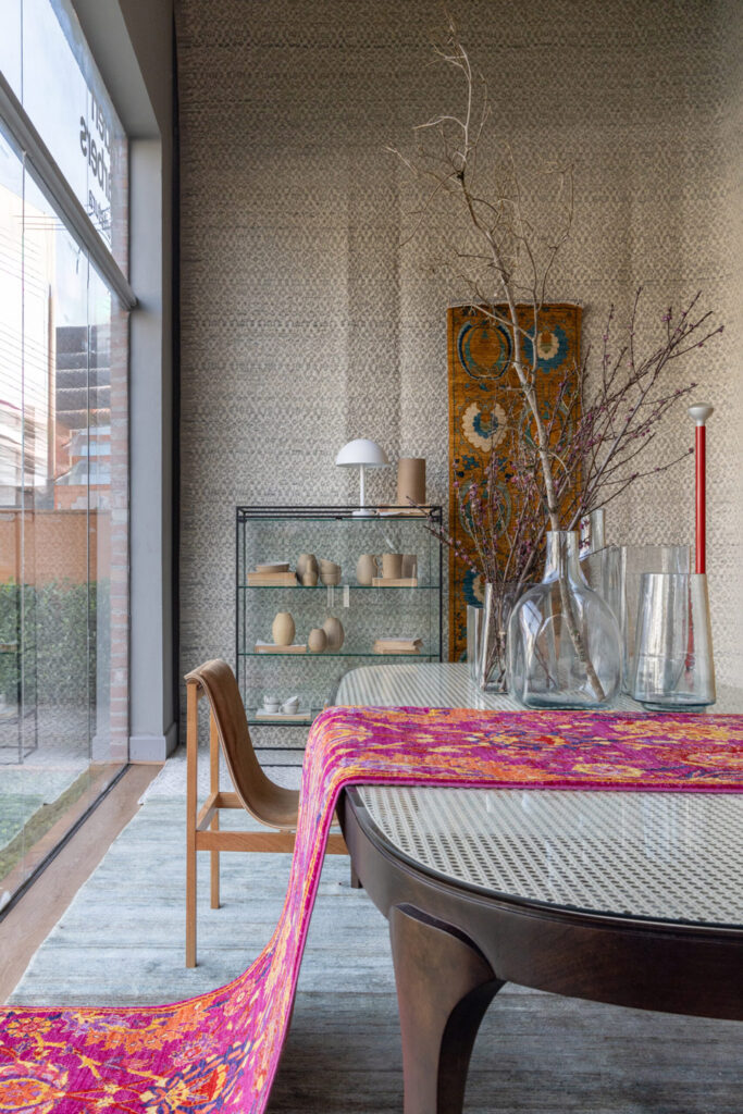Uma sinfonia de design contemporâneo e tradição oriental na nova vitrine @botteh_cwb @rauengarbers em Curitiba. Tapetes Etnia Gold & Blue, Maha Grey & Ivory e Delhi Green criam uma experiência única de diversidade de desenhos, cores e texturas. Uniram o design contemporâneo ao mobiliário em cada detalhe!