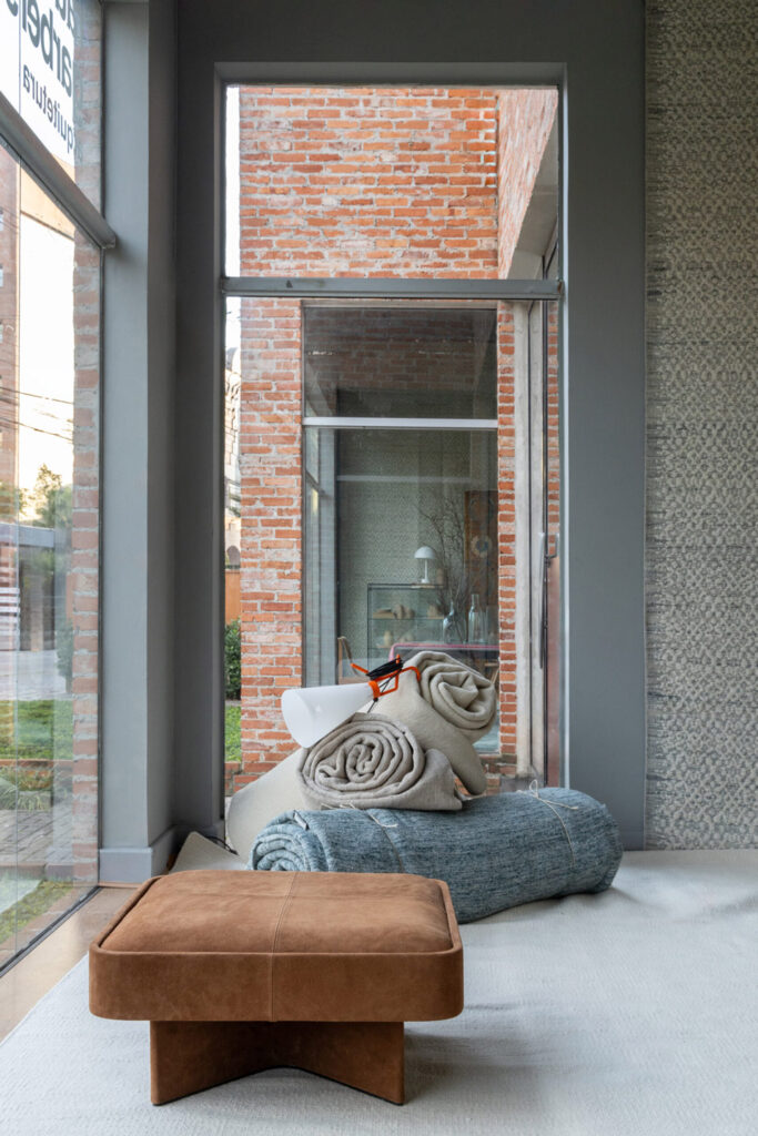 “Uma visão única da vitrine da @botteh_cwb. As texturas e cores ganham vida na composição de estampas e contrastes.” – Rauen Garbers. Mobiliário Simmetria.