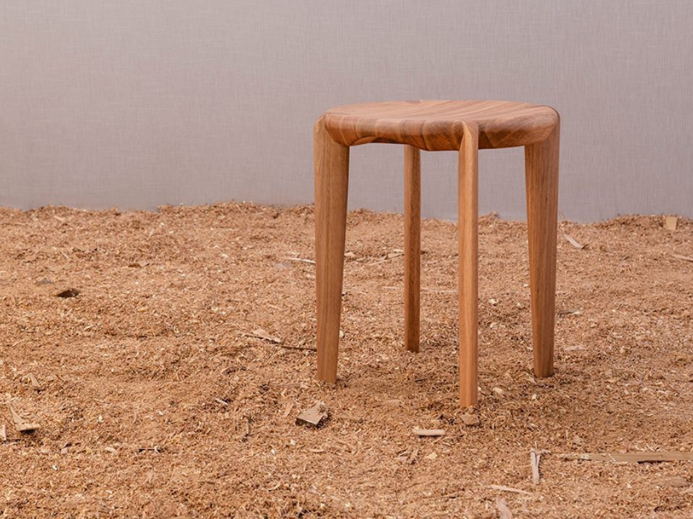 Banco Terra explora a riqueza dos detalhes esculpidos na madeira, com pés que transpassam o assento, transmitindo uma unidade na peça.