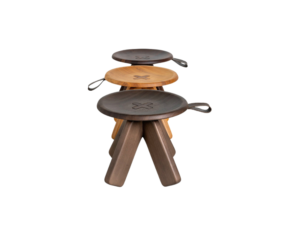 O banquinho Xaxado, que levou o nome da coleção, em madeira maciça, traz detalhes em couro no assento e nos pés que lembram os movimentos da dança, que é a celebração da vida sertaneja e uma expressão autêntica da rica malha cultural do Brasil.