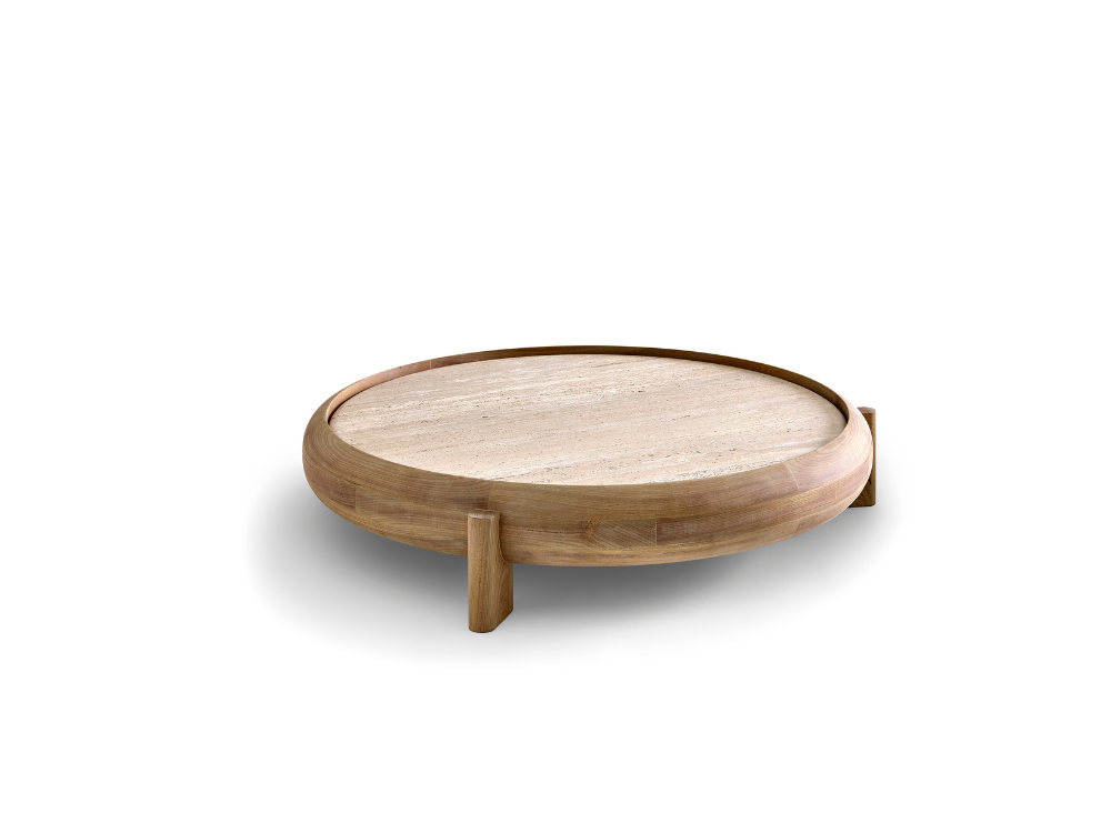 Os braceletes vintage foram a inspiração da mesa de centro Aro, que também explora o movimento brutalista ao adotar formas mais robustas e imponentes.