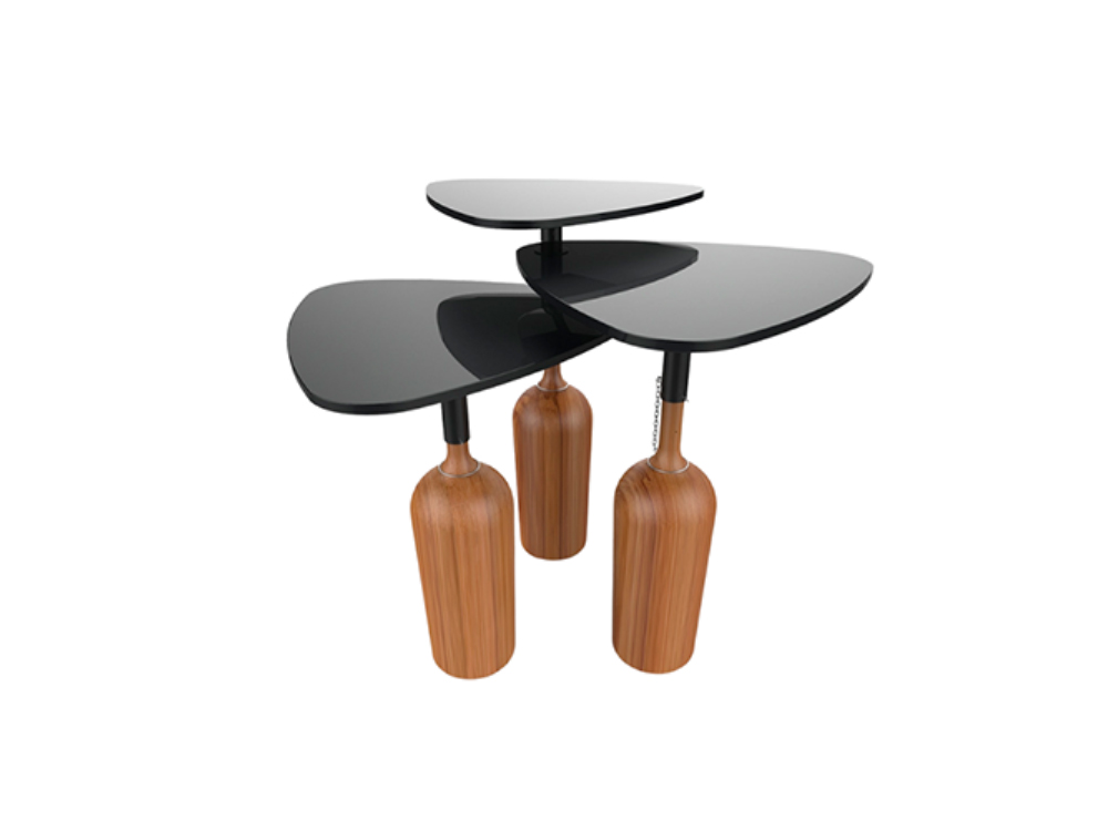 É fácil entender por que a mesa Botelha foi batizada com esse nome: sua base de madeira lembra o formato de uma garrafa. Além do acabamento impecável, a peça traz uma dose de humor à casa.