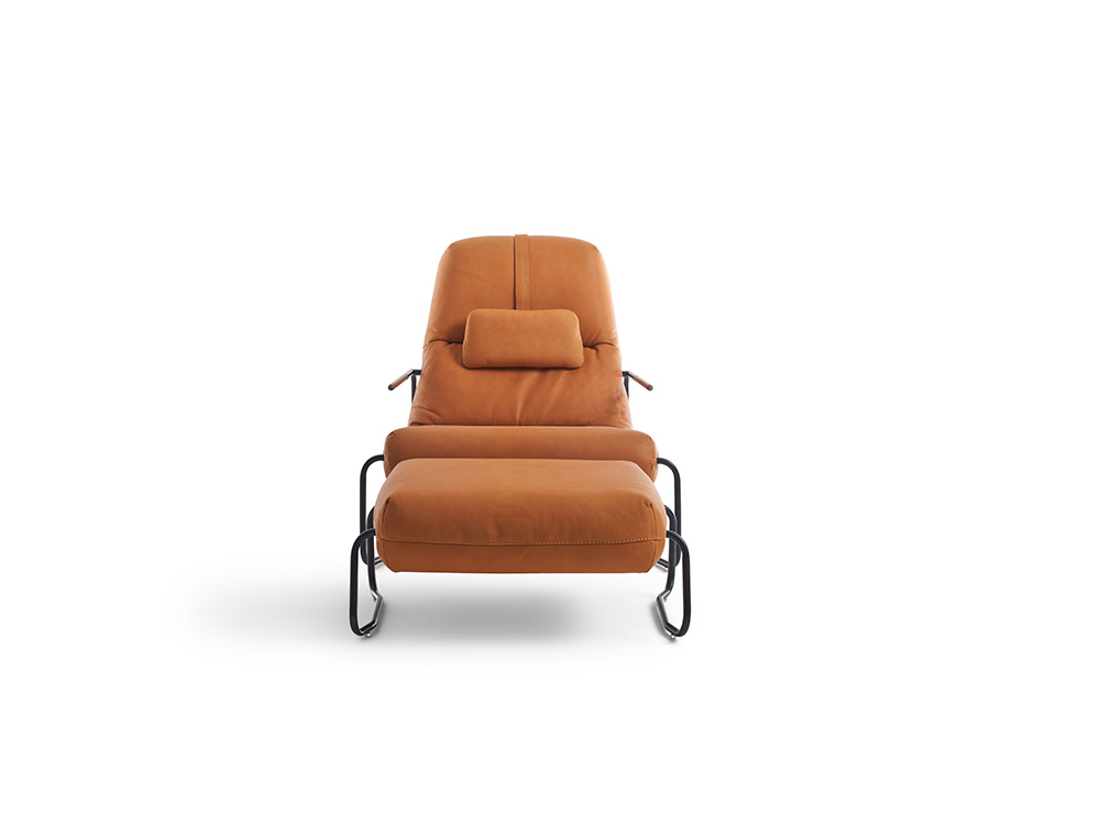 Uma peça que convida ao relaxamento. A poltrona Gomos foi pensada para acolher e trazer o bem-estar para a rotina de quem a utiliza. A estrutura em tubo de metal delgado se contrapõe ao estofado de espessura generosa, enquanto o apoio de braço exibe um detalhe de madeira que traz ainda mais conforto. O encosto de cabeça pode ser removido graças a um pino localizado na parte externa. Criado para acompanhar a poltrona Gomos, o puff também pode ser usado  de forma independente. Seu design contemporâneo e a estrutura em metal tubular se adaptam às mais diversas situações e cômodos, podendo ser usado na sala de TV, no quarto e no escritório.