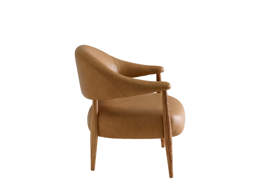 Com design atemporal, que preza a discrição, a peça se distingue pelos seus pés de madeira maciça, com frisos verticais que tocam suavemente os estofados do assento e do encosto e têm toda a estrutura de fixação oculta.
