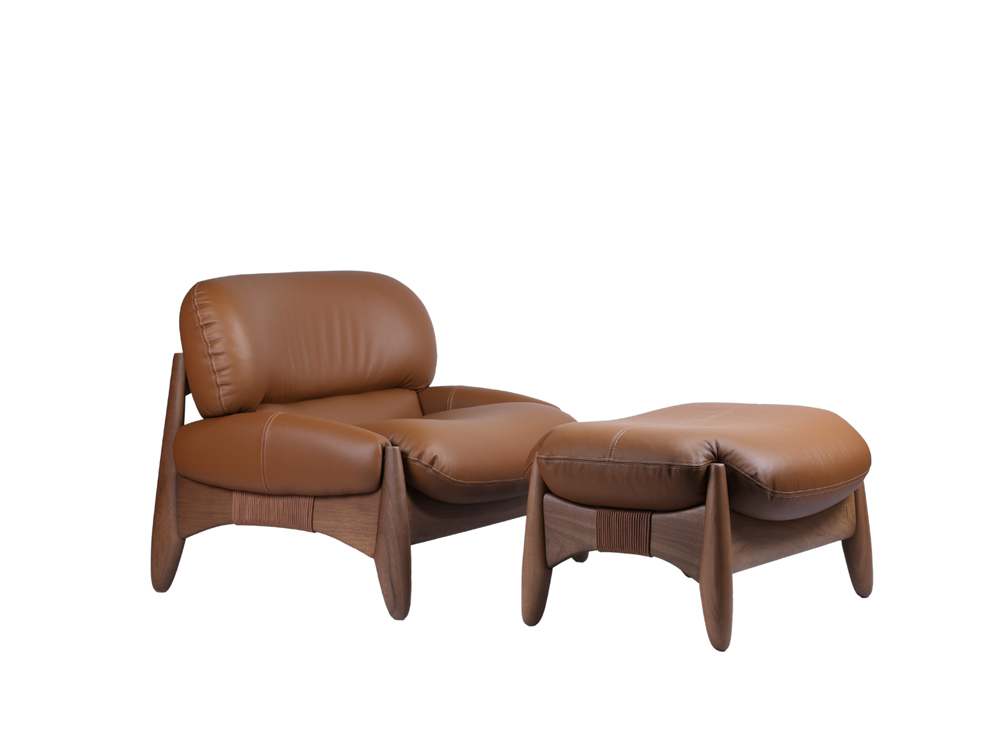 Mauricio Marquez dá vida à poltrona e ao puff Terra, inspirados no solo que nos forma como nação. A peça se firma na solidez da madeira e na nobreza do couro, traduzindo a essência de um Brasil que se molda entre tradição e inovação. Um tributo ao solo brasileiro: imenso, rico e repleto de história.